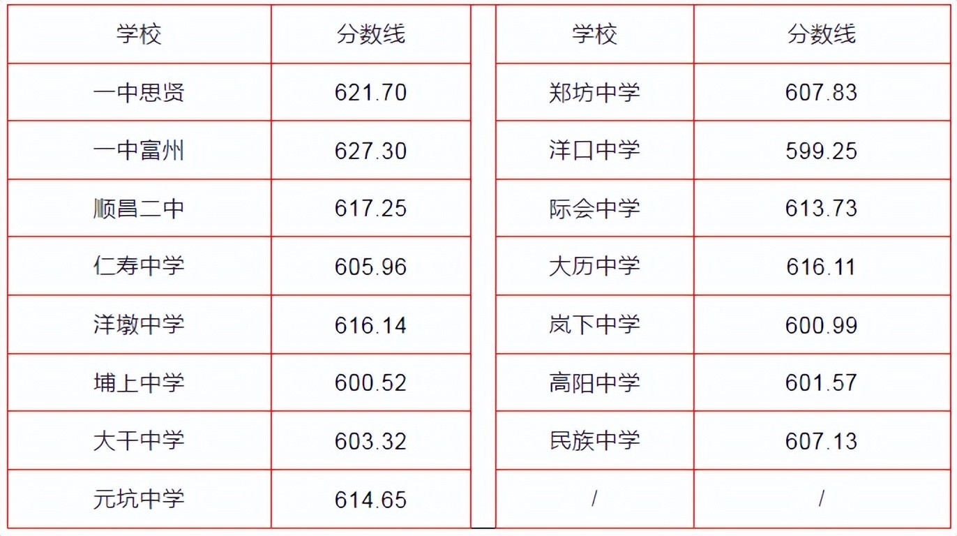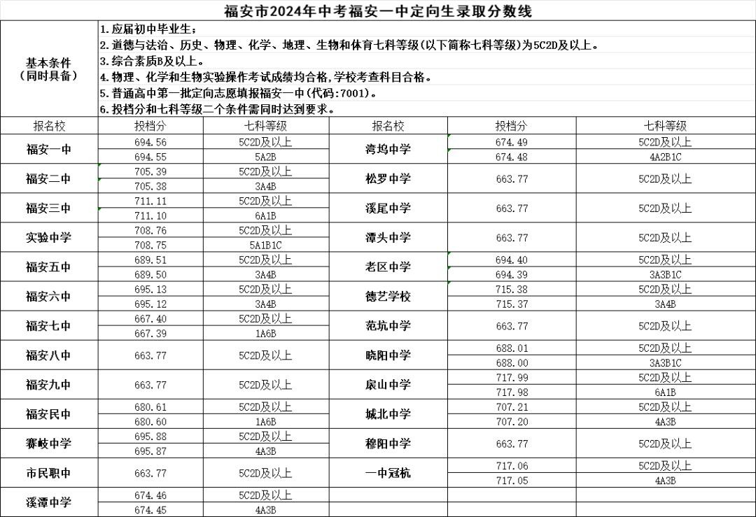 福安市普通批(统招生)福安六中、福安高级中学录取分数线划定