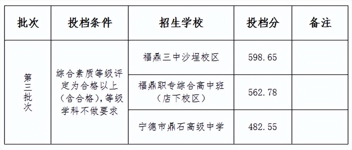 福鼎市普通高中征求志愿补录分数