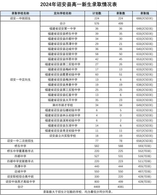 邵武一中未完成定向招生计划,剩余指标按邵武市考生统一划线:664.65