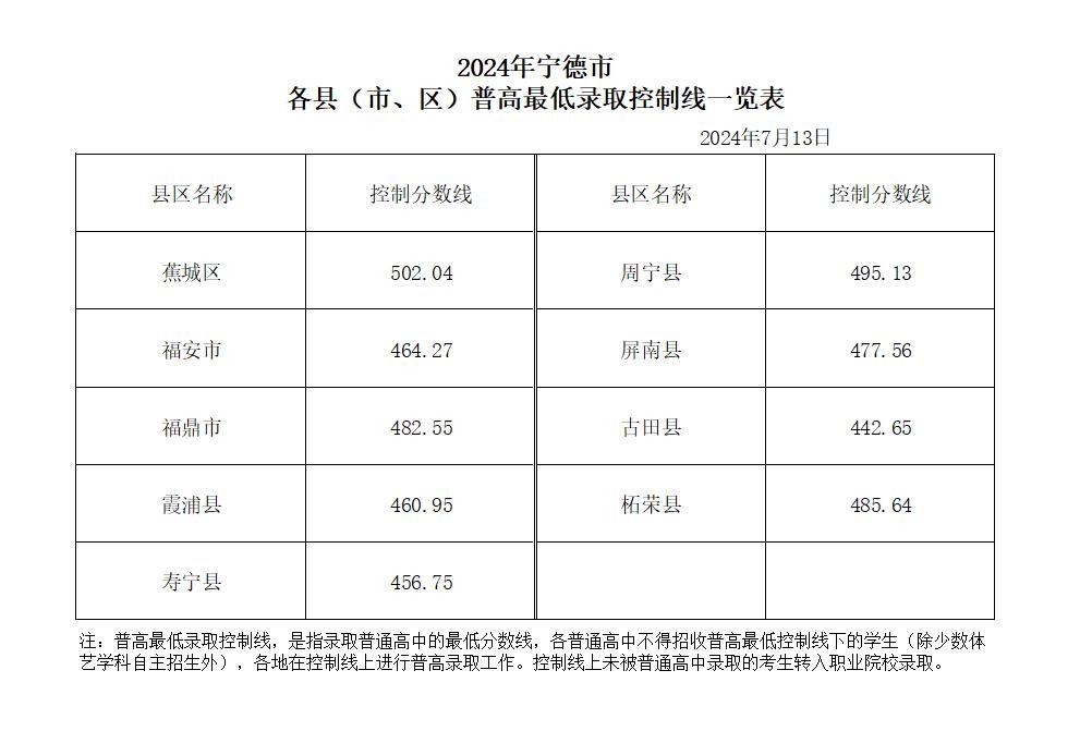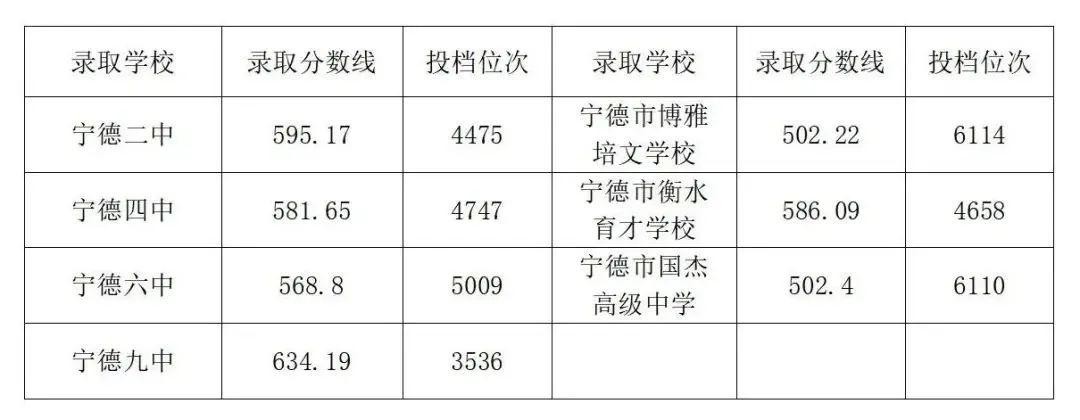 宁德市普高录取线