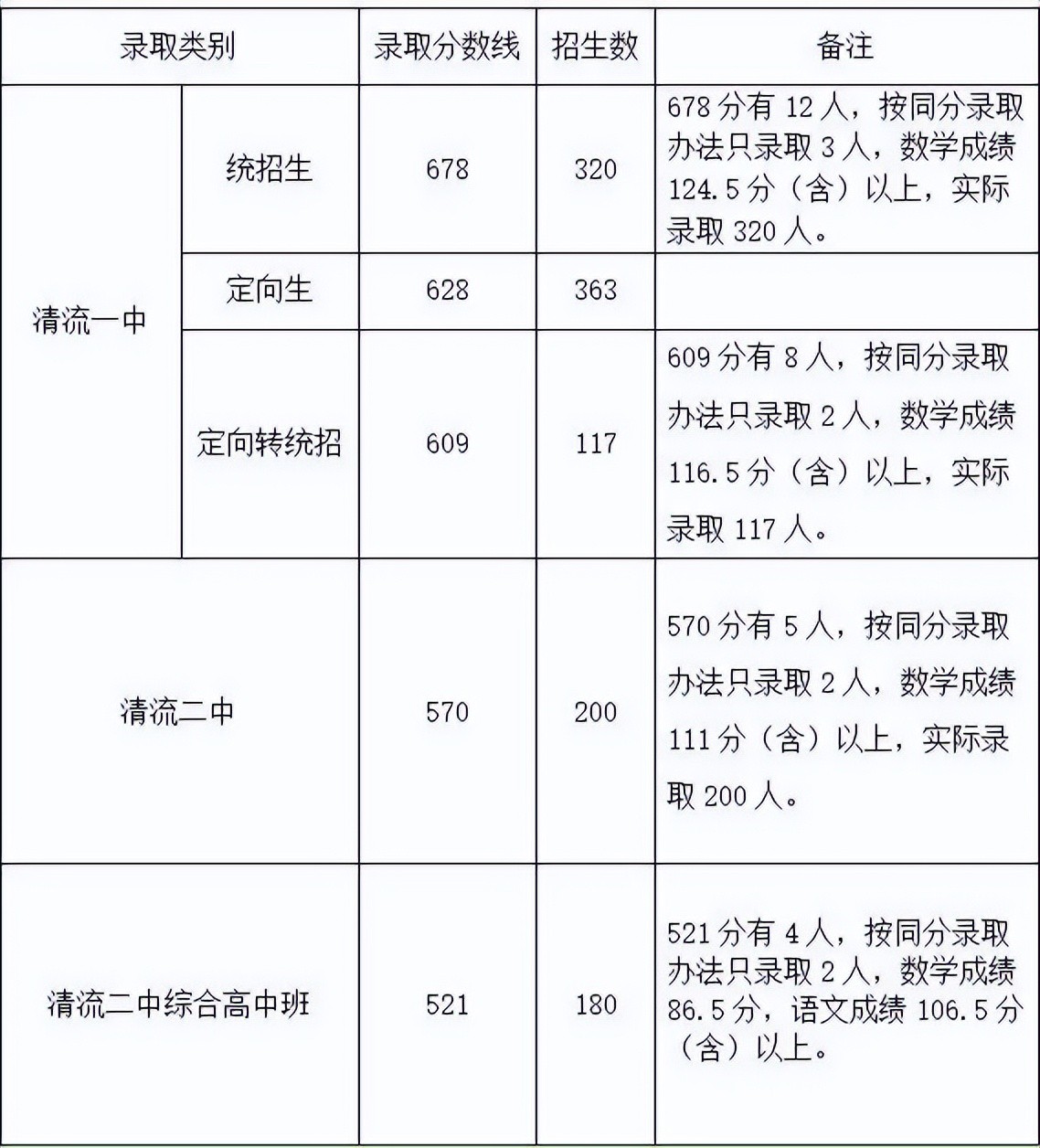 三、三明一中、二中未完成定向生转入统招生切线情况