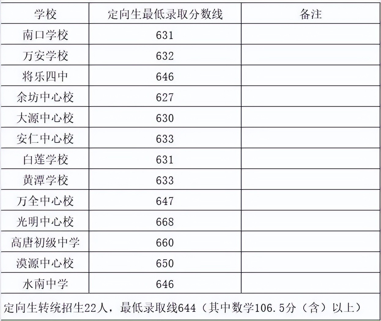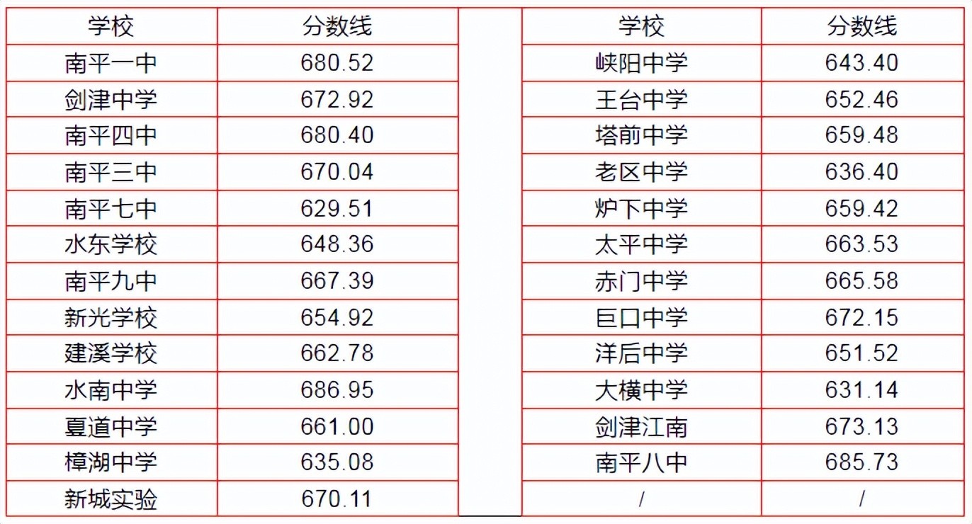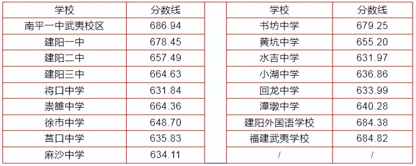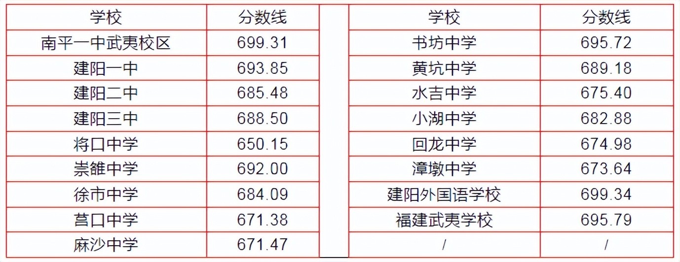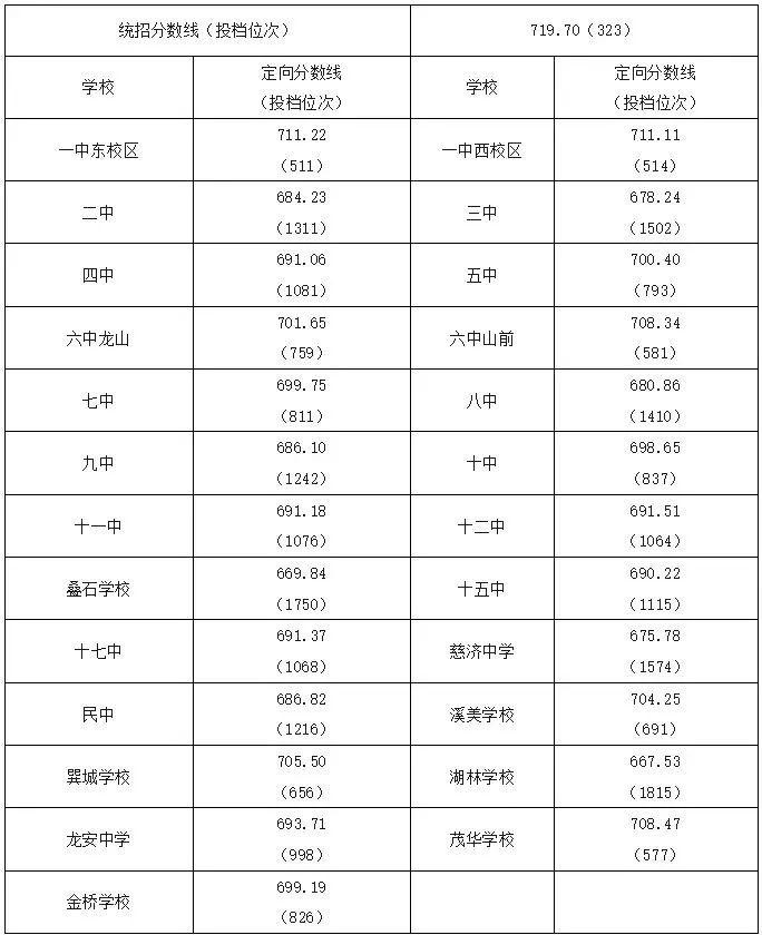 城区未完成的武夷山一中定向招生计划,剩余的定向生指标面向城区调剂录取分数线:670.40。