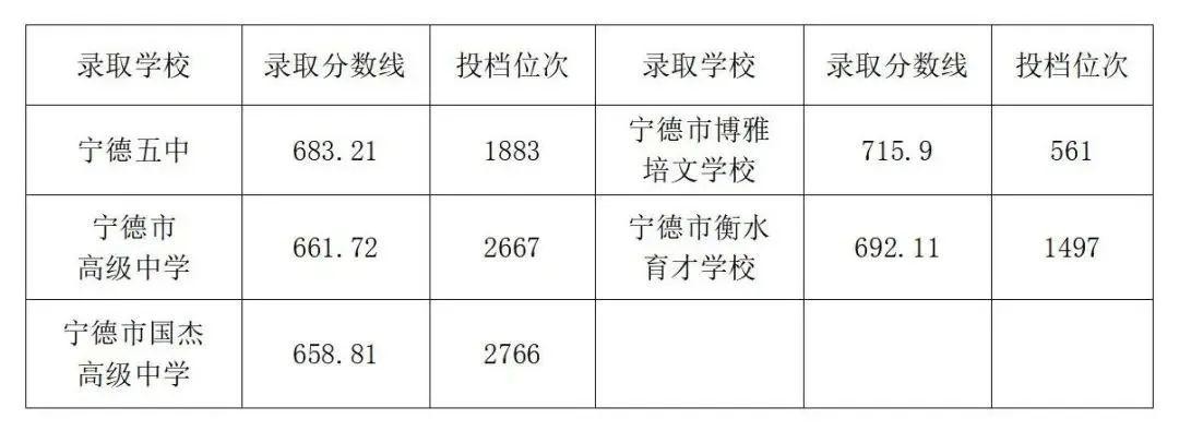 二、宁德一中录取分数线