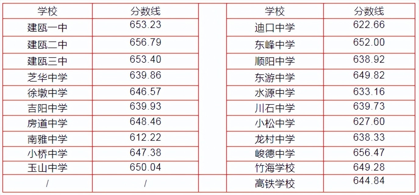 注:1、建瓯一中定向生录取最低控制分数线632.93。