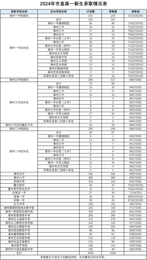 漳州全市普通高中最低投档控制分数线为 428分;