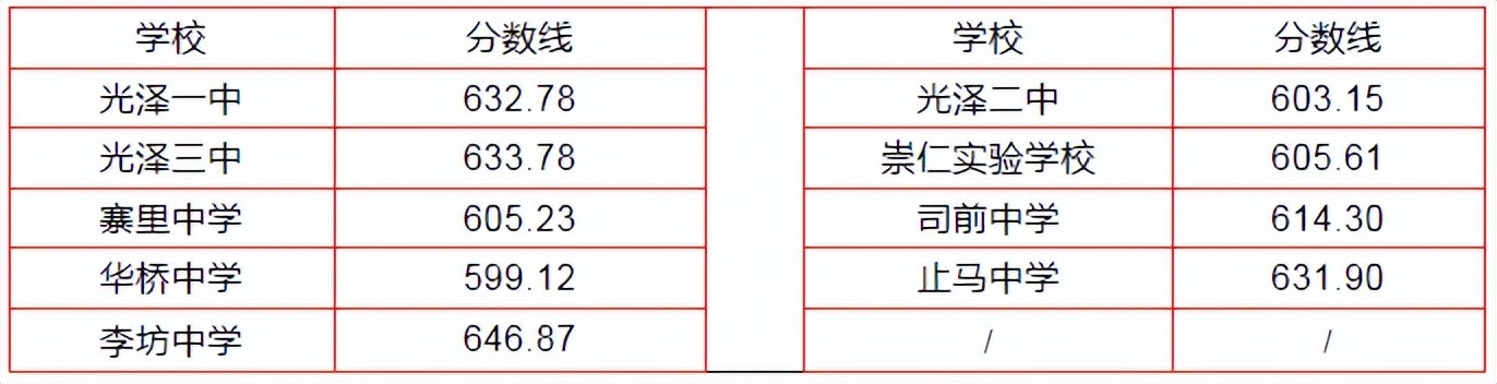 二、光泽一中定向招生各校录取分数线