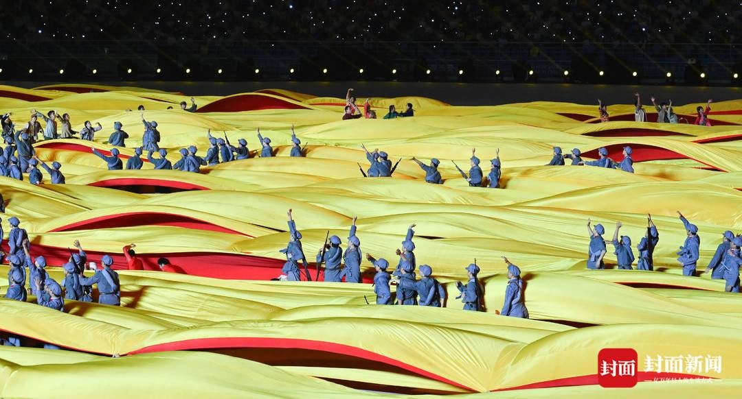 北京时间2021年9月15日,第14届全运会于西安正式开幕,开幕式在位于千年古都西安的奥体中心举行。本届全运会的开幕式文体展演部分可以说是精彩纷呈。以《奋斗新时代 奋进新征程》为主题,在序曲《迎宾鼓阵》的磅礴气势下,《民族根》、《延安魂》和《中国梦》三大篇章像画卷一样一一展开。