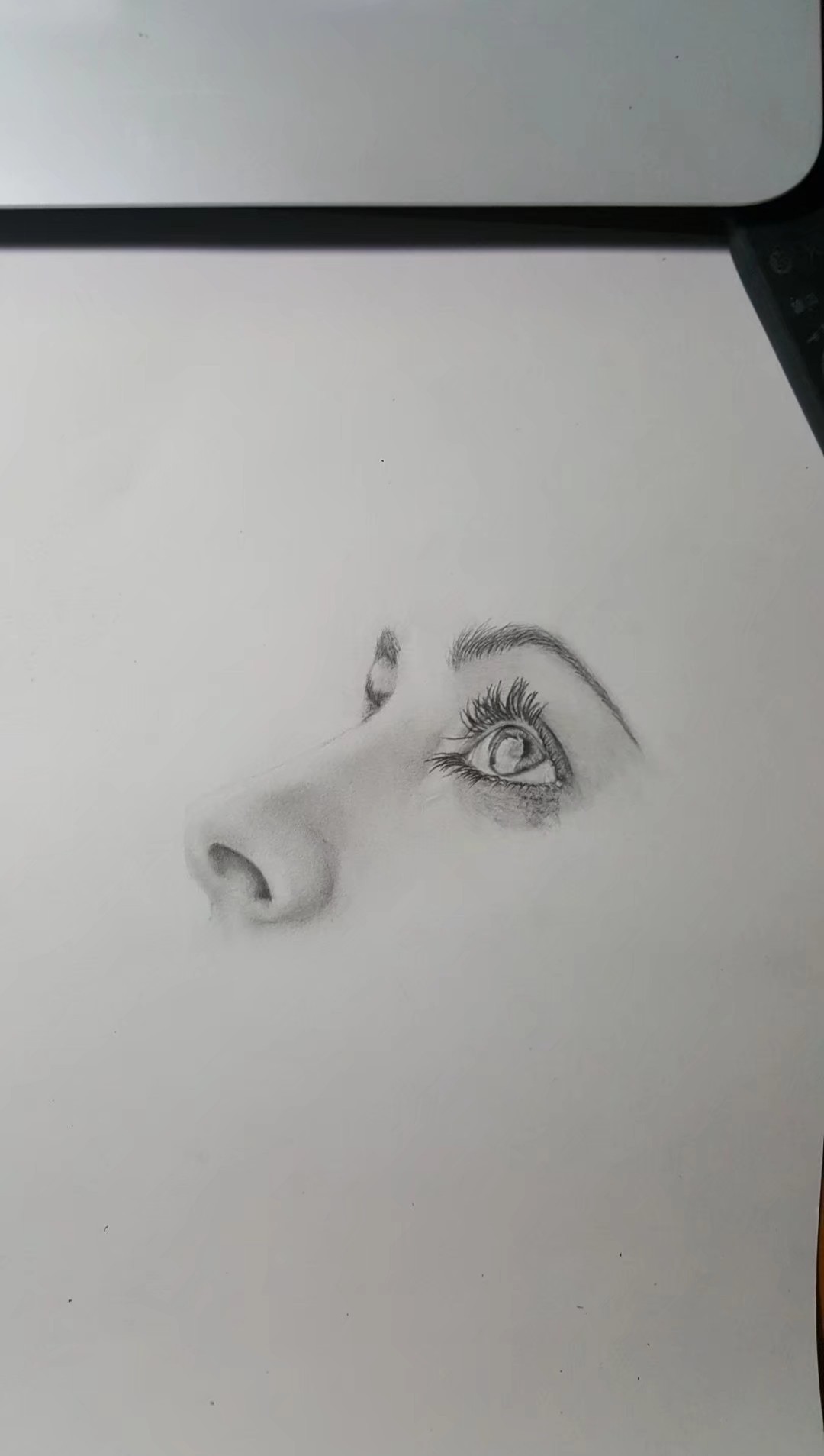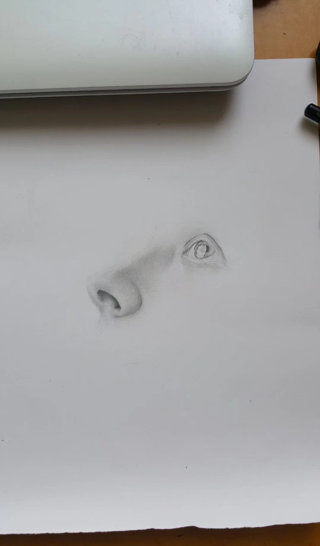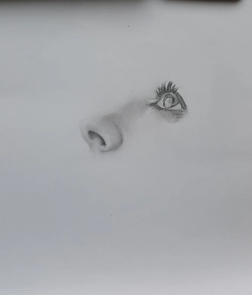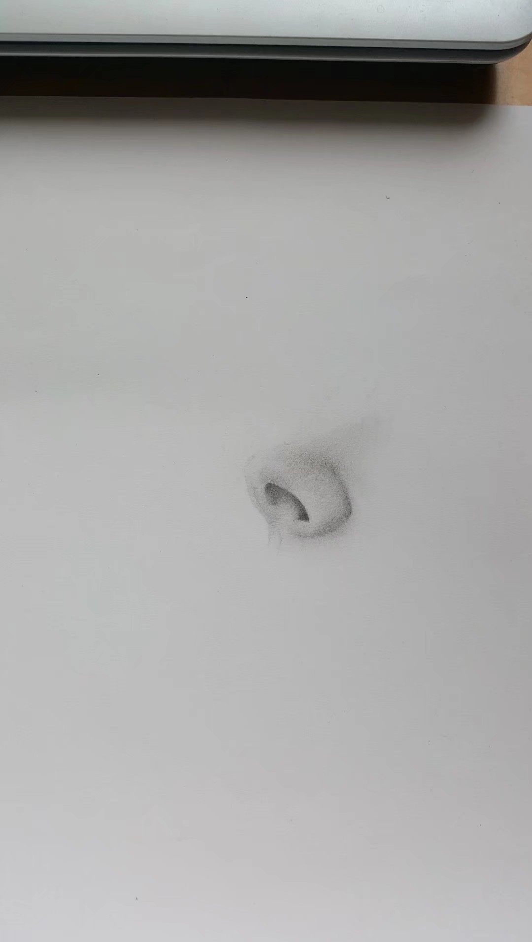 准备一张素描纸,用HB的铅笔轻轻的将鼻子画出,注意鼻子的结构,画的要细腻。阴影用2B,4B逐渐加深。以下的步骤都是这种方法处理。