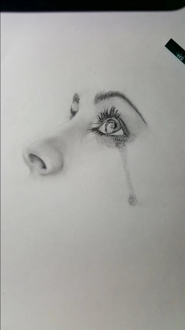 画出眼泪,注意眼角处的细节。这个半张脸的人物就画好了,非常简单。