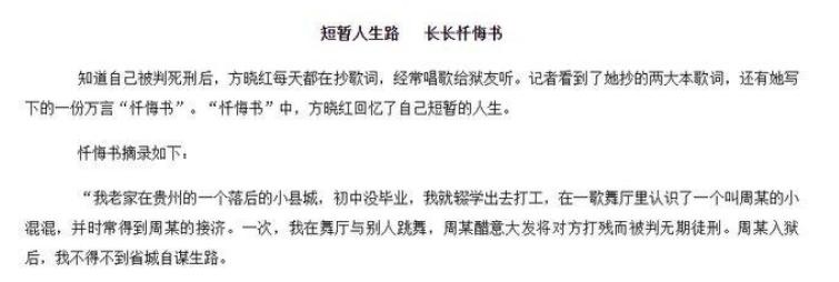 那么,这位名叫方晓红的死刑犯究竟拥有着怎样的美貌?她又犯了什么罪而被判死刑呢?