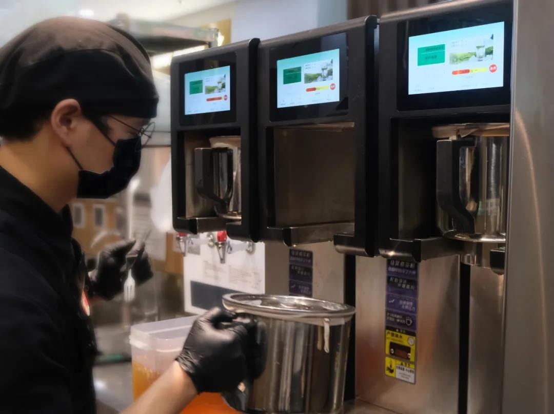 店员正在使用佳泽泡茶机