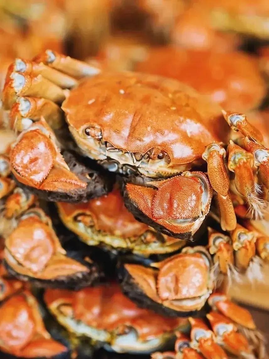 阳澄湖大闸蟹是我国最享誉盛名的淡水蟹,个大膘肥,一般三只就有一斤,大的一只可达半斤以上。外形青背白肚,黄毛金钩,故又被称为“金钩蟹”,被誉为“蟹中之王”。