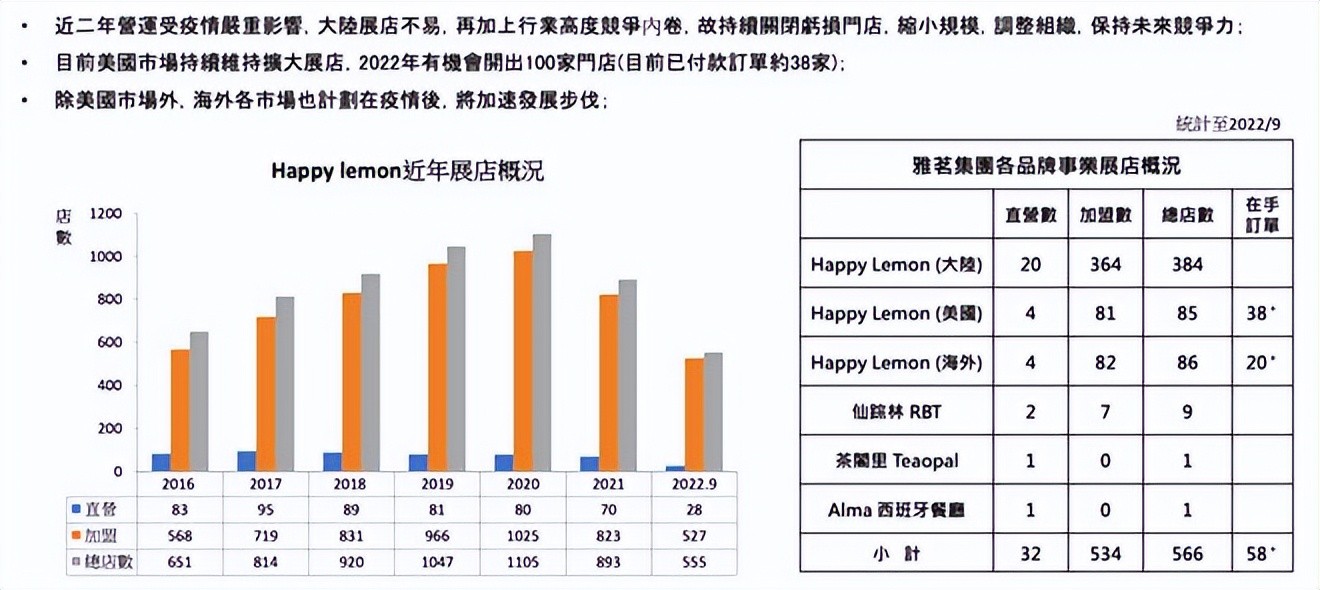 快乐柠檬的巅峰期是2019年。据母公司雅茗天地财报,其营业收入达22.2亿新台币(约合5亿人民币),税后净利润1.29亿元新台币(约合2900万人民币)。