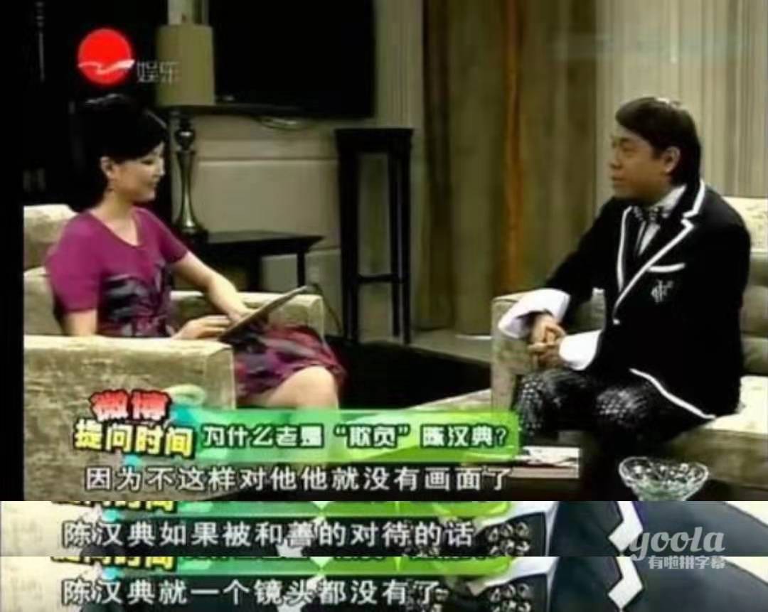 为了迎合观众的口味和收视率,他就要做自嘲、被欺负的丑角,如果他被善待的话,陈汉典就连一个镜头都没有。