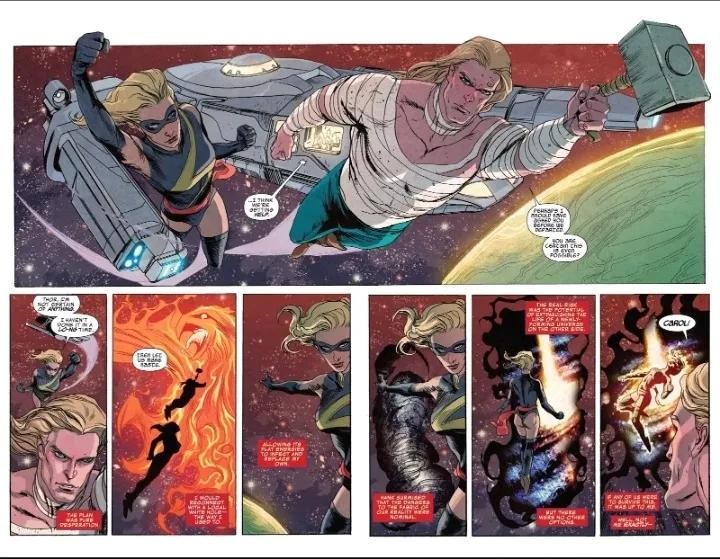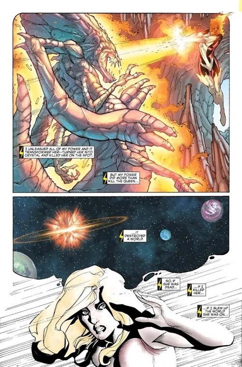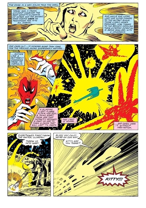 卡罗尔解释她释放了所有的力量,杀死Brood女王,并摧毁了整个世界。