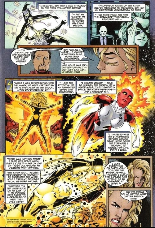 野兽指出随着她的力量消退,已经无法再变成双星形态,她改名为战鸟。