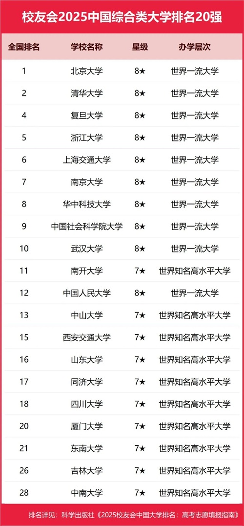 重磅:校友会2025中国大学排名发布