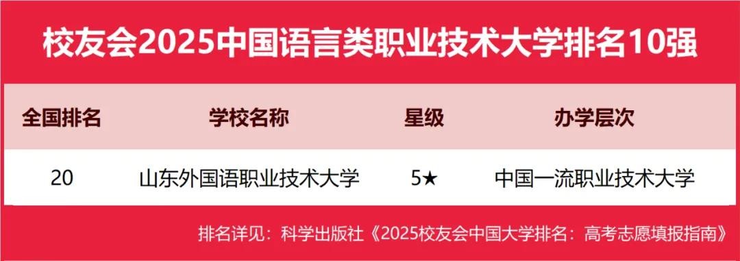 山东外国语职业技术大学位列2025中国语言类职业技术大学排名第一。