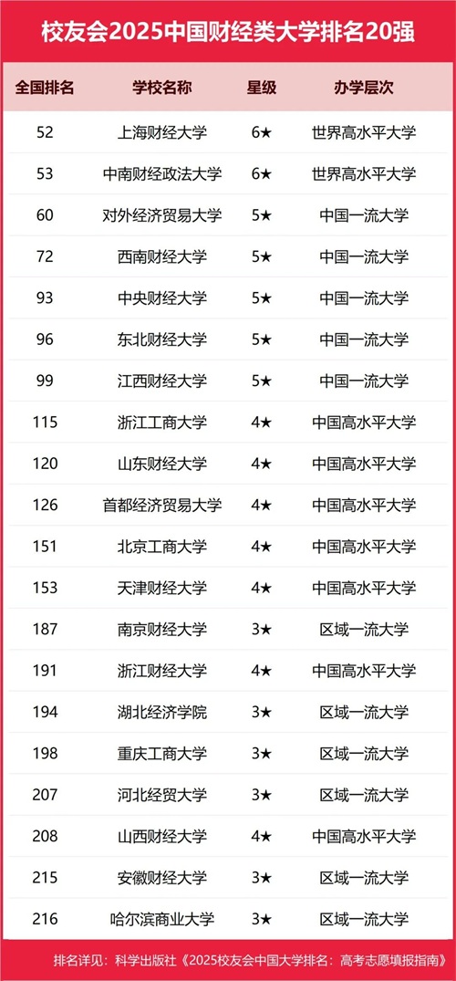 雄居2025中国财经类大学排名第一