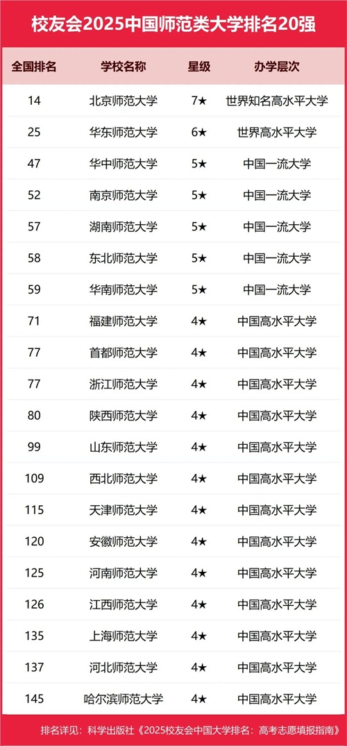 位列2025中国师范类大学排名第一
