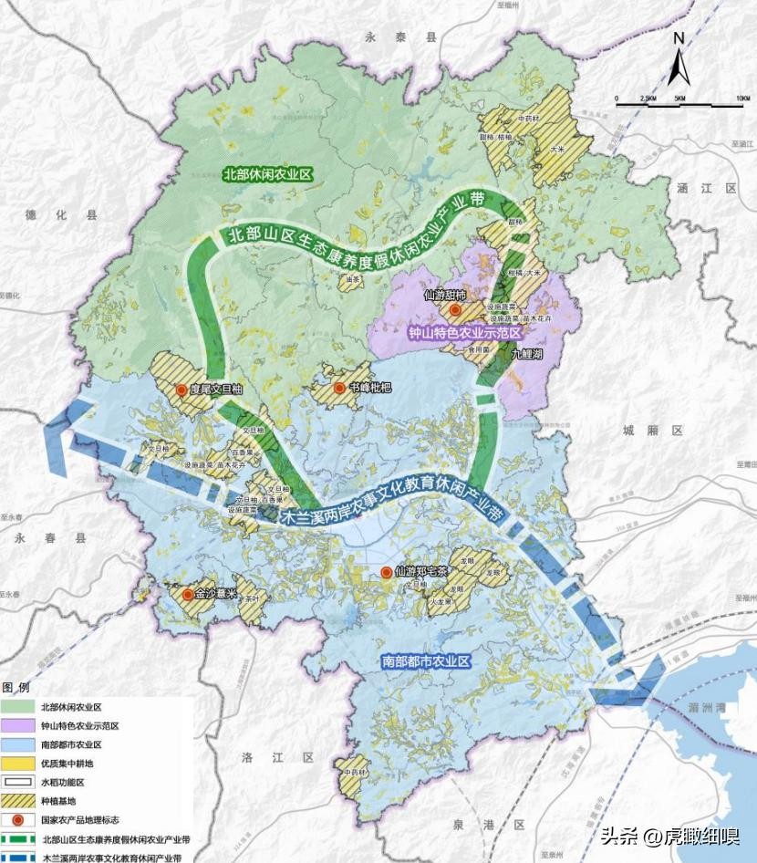 三大特色农业发展区:北部休闲农业区、钟山特色农业示范区、南部都市农业区。