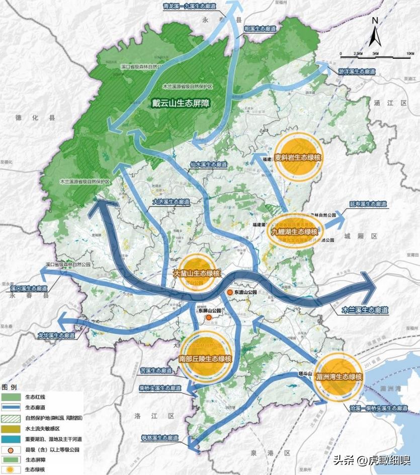 多核、多廊生态斑块:依托木兰溪、九鲤湖、菜溪岩、大蜚山、金钟水库等若干生态斑块和生态廊道建设,构建完善立体生态网络系统。