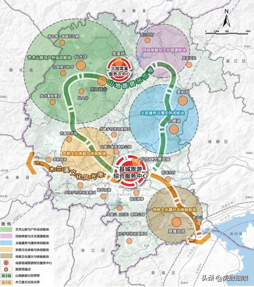构建“两核两带五板块”的全域旅游发展格局,全面加强仙游中心城区、菜溪一主一次县域旅游综合服务中心建设,优化提升北部山地旅游示范带和木兰溪文化风光带旅游服务功能,高品质打造五个特色旅游发展板块,全方位建设国家全域旅游示范区。