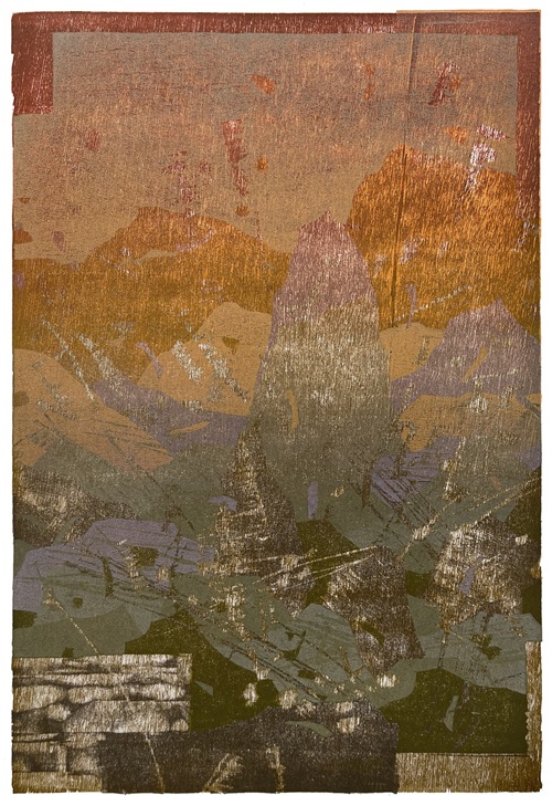 张远帆 游记-夕岚 30X20cm 油印木刻 2023年