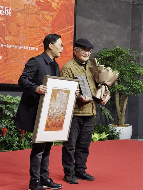 作品捐赠仪式,丽水市美术馆馆长吴宾向张远帆教授颁发收藏证书