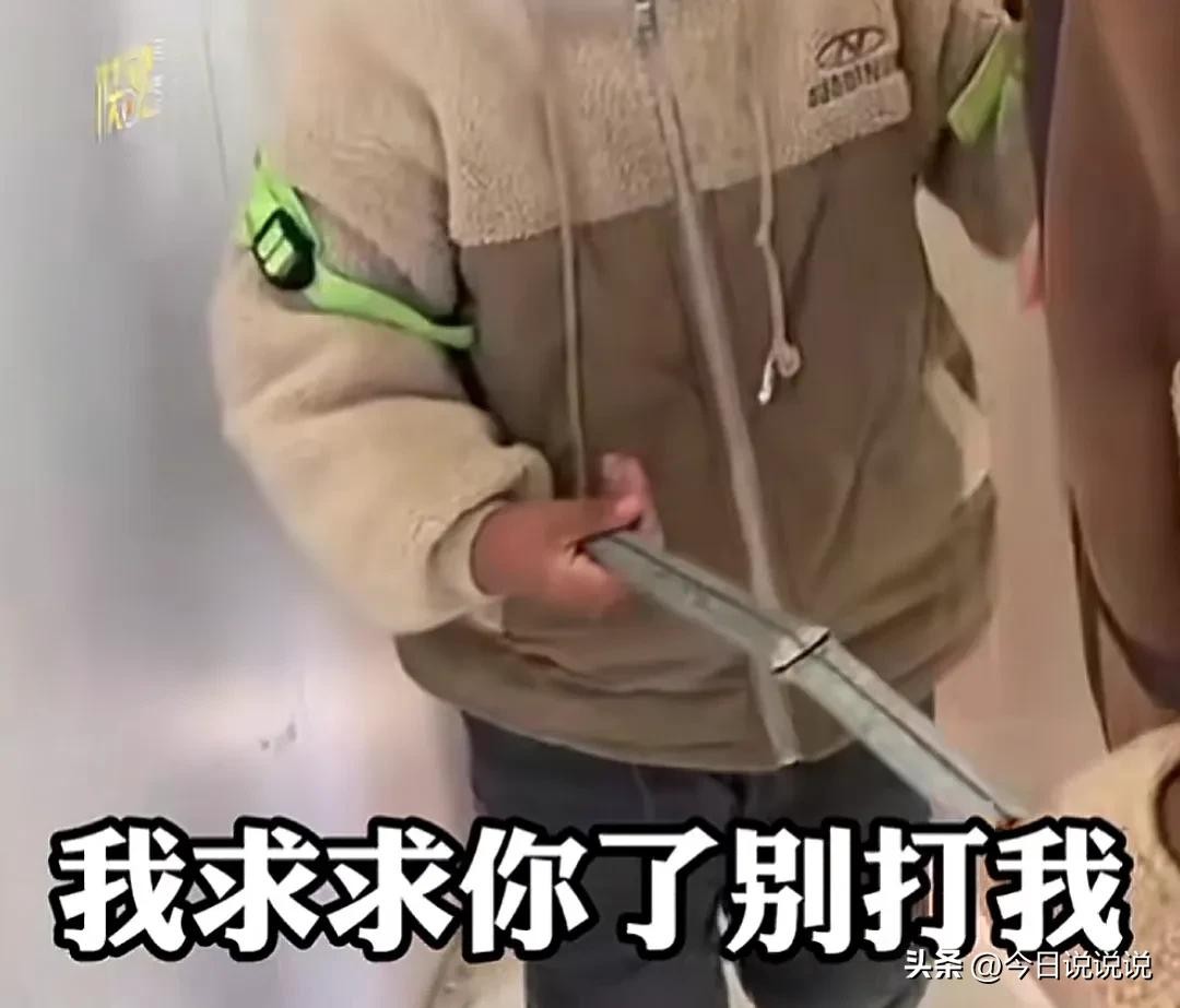 老师拿着铁棍要打男童,孩子说:“这么长的棍子会打死我的”老师说:“我就只想打死你”