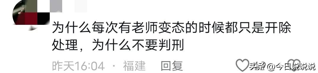 网友们纷纷表示诧异,如此变态作为的老师最后的惩罚竟然仅仅是开除而已,说白了开除后也就损失份工作,一千多块钱,其它根本改变不了什么啊?