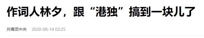 信息来源:共青团中央--作词人林夕,跟“港独”搞到一块儿了2020-08-14