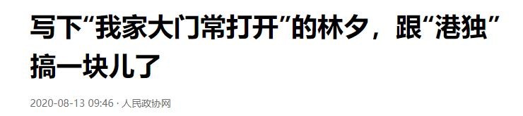 信息来源:人民政协网--写下“我家大门常打开”的林夕,跟“港独”搞一块儿了2020-08-13