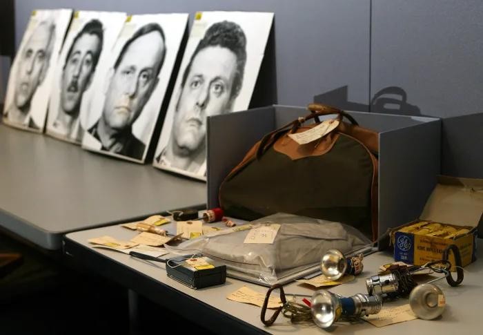 警方手中水门事件的证据。左边是4名来自迈阿密的古巴人的逮捕照片。