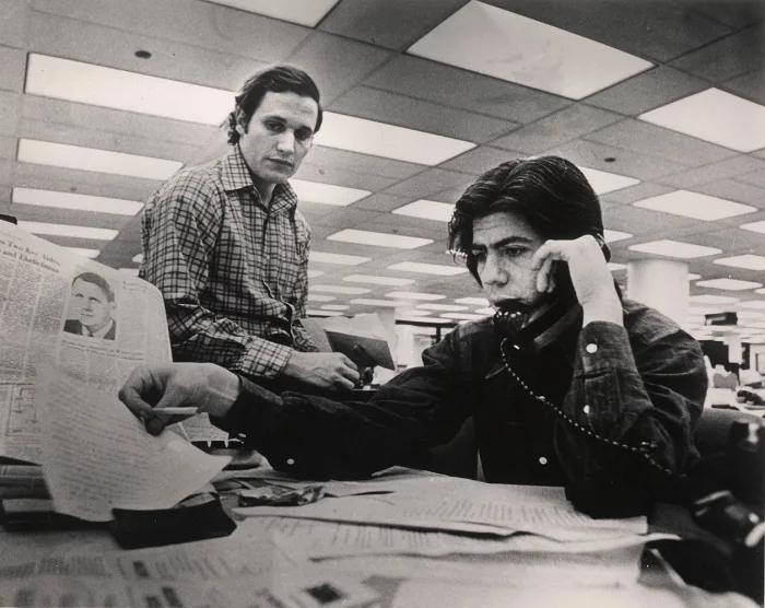 鲍勃伍德沃德(左)和卡尔伯恩斯坦在华盛顿邮报新闻编辑室,1973 年。