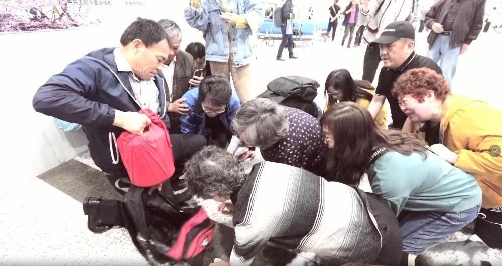 2019年,一群老人跪在接机口,双手紧扣,泪如雨下。