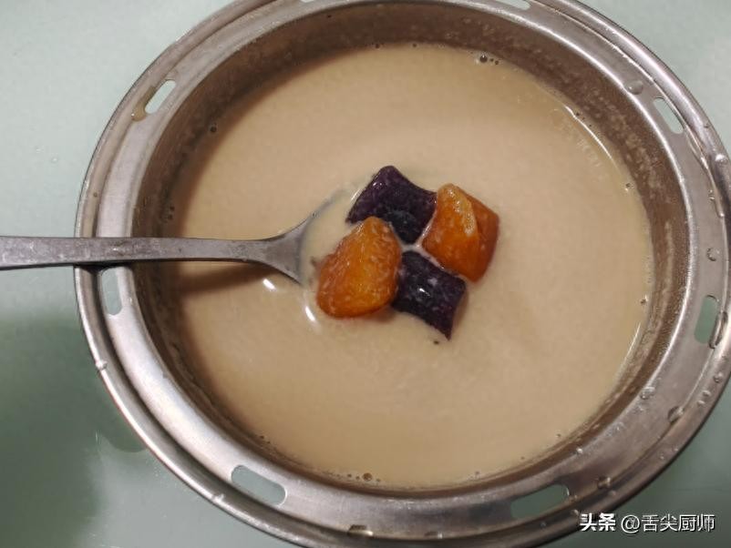 6. 加奶调味:将200毫升牛奶倒入锅中,用小火加热至温暖,避免加热过度导致奶香失去。如果使用的是植物奶(如杏仁奶、燕麦奶等),也可以加入。