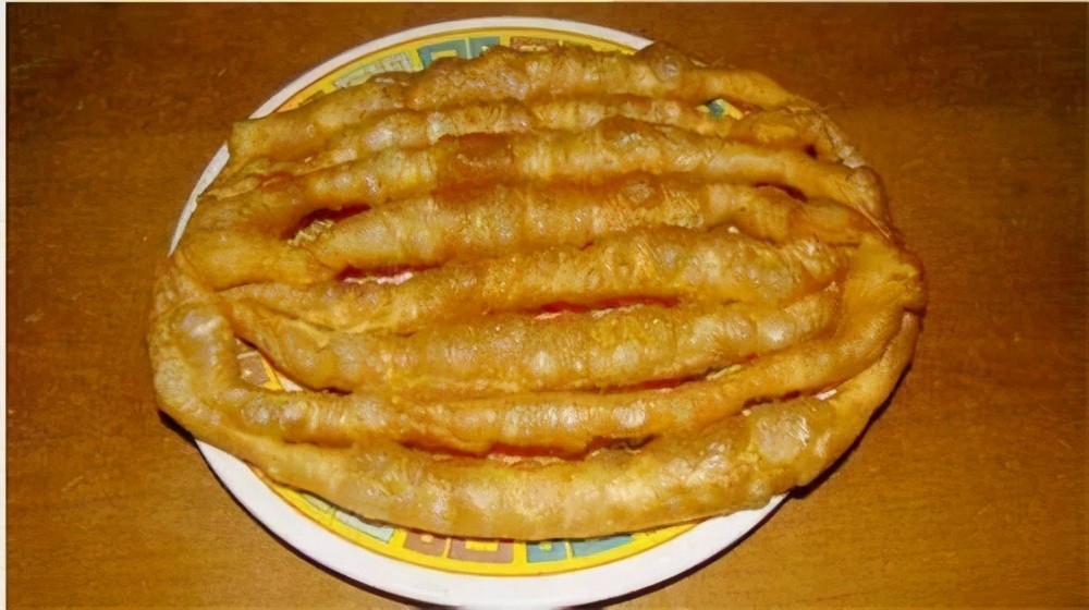 八批果子对老一辈的聊城人来说,都熟悉得很,满载着记忆里聊城的味道。“果子”就是油条,“八批果子”就是八根油条,两端相连,呈椭圆形。