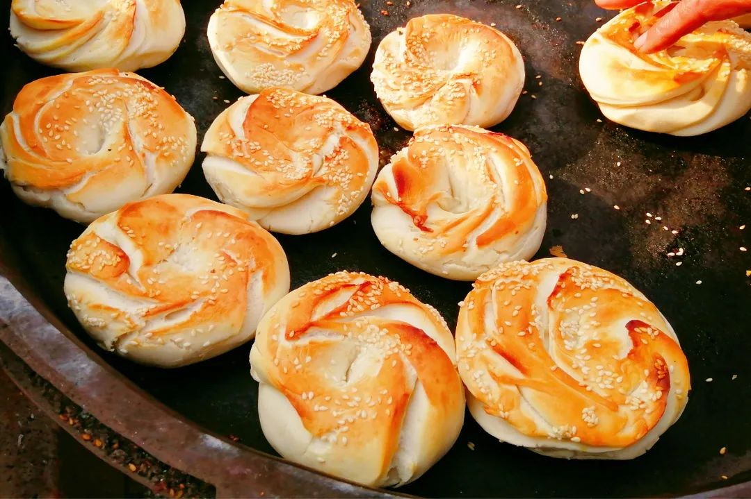 博平马蹄烧饼是在一口大锅里用炭火烤的,烤到两面金黄的时候即可出锅。不管是马蹄烧饼还是其他什么烧饼,都是刚出锅的最好吃,软软香香,满满碳水的快乐!