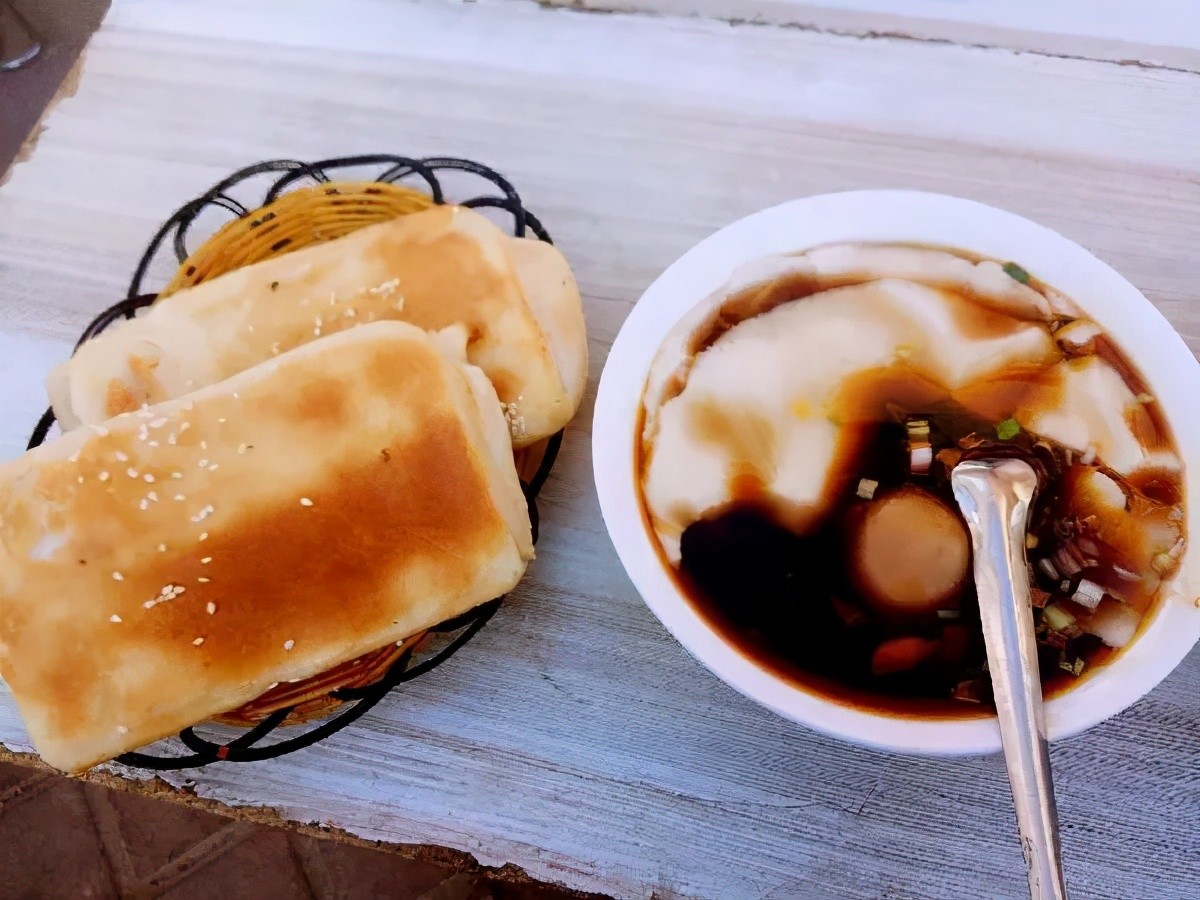要说最具聊城特色的美食,不得不提一句“呱嗒”,其中沙镇呱嗒最为有名。起个早儿,买个焦香酥脆的肉呱嗒/鸡蛋呱嗒,就点小咸菜,再来上一碗免费的豆浆,真滋儿!