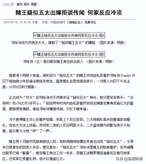 邓咏诗:虽然赌王已经去世,但他给我的上亿分手费根本花不完
