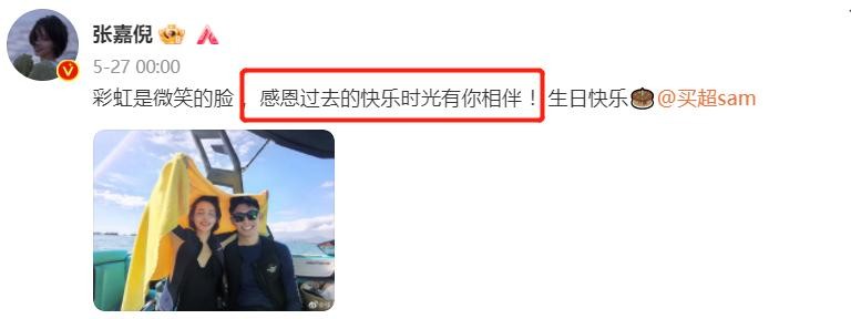 5月时,张嘉倪为买超庆生却表示感谢对方在过去时光的陪伴,丝毫没有提及将来,这也让外界一度猜测两人情感出现问题。