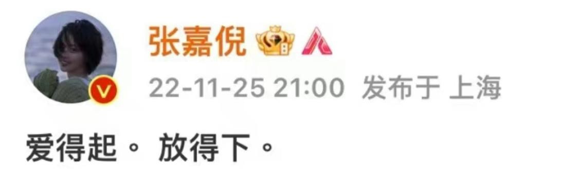 曾经说着“我们之间没有离婚,只有丧偶”的甜蜜伉俪,如今也成为过往云烟。在绯闻曝光后,张嘉倪透过社交平台甩出一句:“爱得起,放得下”。