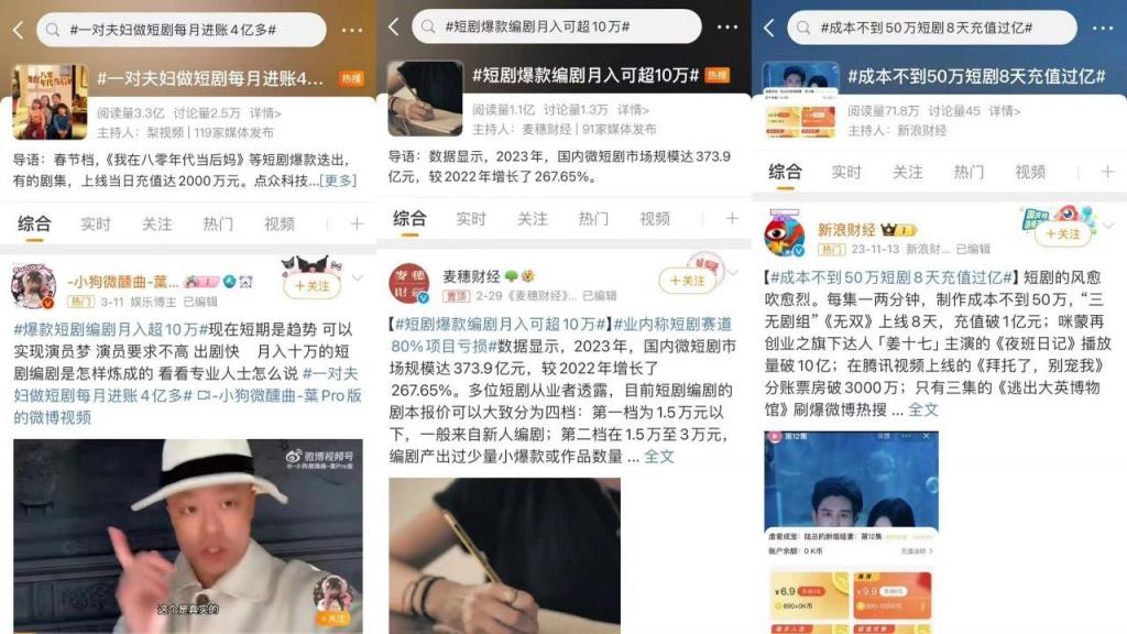 而且明明去年一整年,关于微短剧的报道层出不穷,行业爆火已是不争的事实。为何原本闷声发财的创作者、平台今年要一反常态走上台前,频频发文、买文宣告 " 微短剧很赚钱 "。其行文之间仿佛在大声向外界投资者呼喊," 快到碗里来 "。