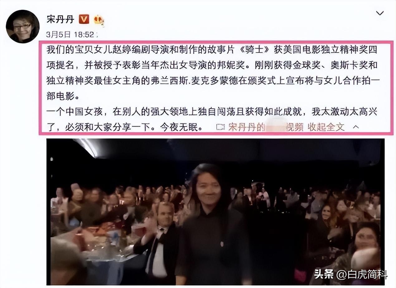 金球奖史上第一位获得最佳导演的亚裔女性是赵婷。她是宋丹丹的继女,也是宋丹丹引以为傲的女儿,但其实两人的关系变成现在这般和谐样子,宋丹丹没少下功夫。从之前两人第一次见面赵婷仇视的直呼宋丹丹大名到后来和女儿同框在平遥电影节红毯上就能看出来。