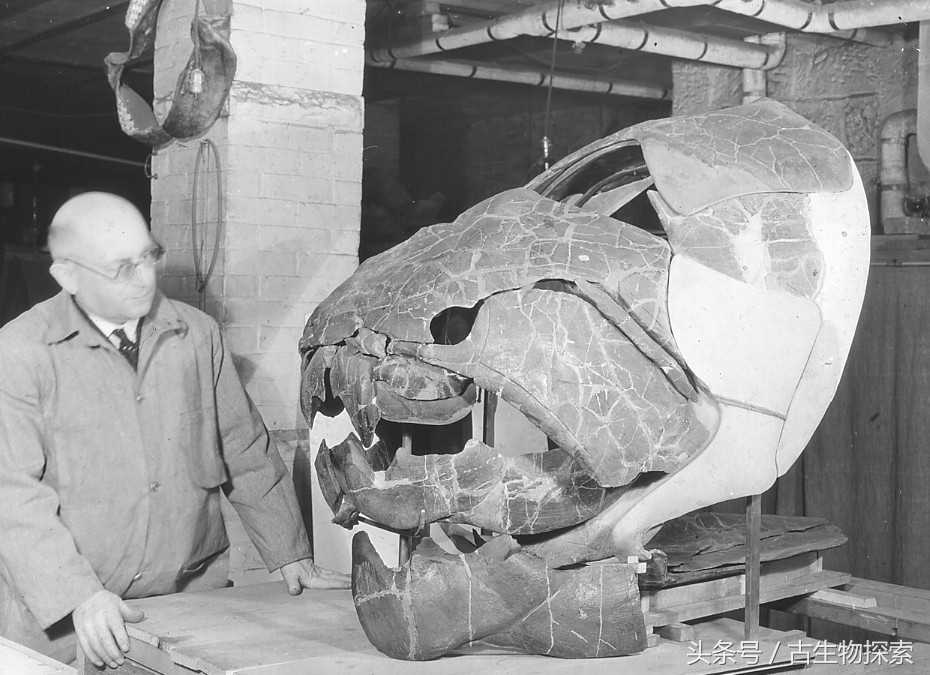 图注:早期的古生物学家在修复恐鱼的化石,它其实是邓氏鱼,图片来自网络