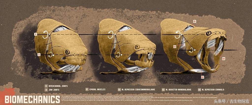 图注:邓氏鱼头骨肌肉示意图,这是其强大咬合力的源泉,图片来自网络