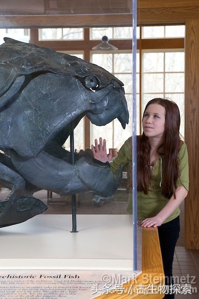 图注:博物馆中邓氏鱼的化石总是引起观众的驻足,图片来自网络