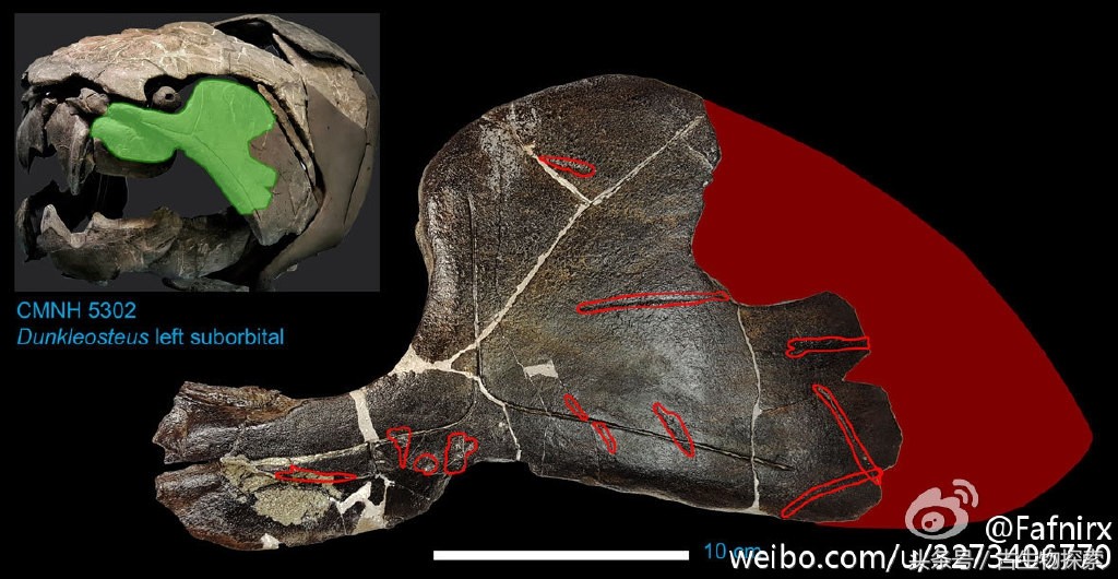 图注:在邓氏鱼头骨上发现的来自同类的咬痕,图片来自网络
