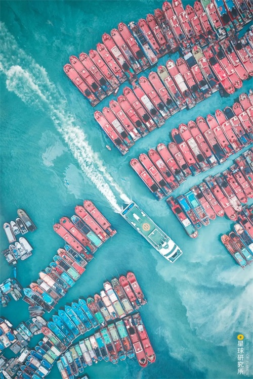 请横屏观看,北海国际客运港内整齐的船只| 摄影师@梁杰
